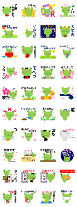 かえるるる 春編+日常会話 スタンプ画像一覧