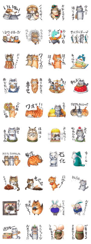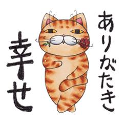 変な猫キャラクタースタンプ第2弾!以前描いたイラストに素敵な言葉を添えましたよよよ☆ひこ屋 より発売