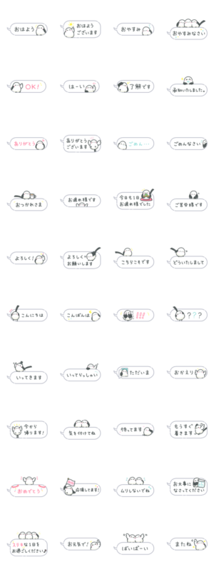 吹き出しまえなが第7弾です。使いやすいあいさつのシマエナガスタンプです。卯月つくし より発売