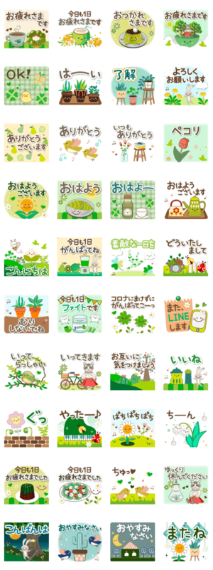 緑を基調としたデザインのスタンプで、目に優しくて癒されます。