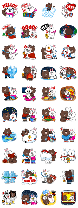 ブラウン&コニー 冬のほっこりデートのスタンプは、冬にたくさん使えるスタンプです!カップルでたくさん使えること間違いなしです!!