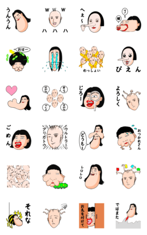 圧倒的なインパクトのあるスタンプ揃いなので、ウケを狙いたい人必見です。