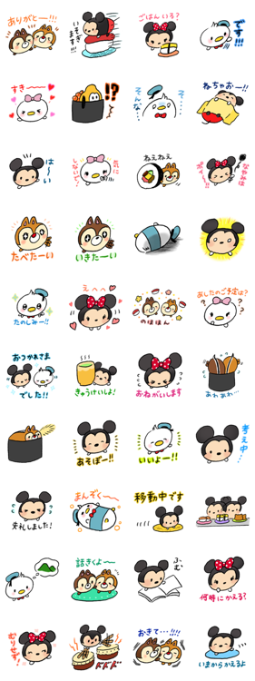あの「おしゅし」でおなじみ、やばい描きおろし「ディズニー ツムツム」のスタンプだよ!ミッキーと仲間たちの使いやすいスタンプだよ!