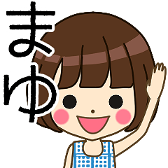 まゆさんの名前入りスタンプ。 髪型が同じ「かーいって言いたいだけのスタンプ4」発売中べるうっど より発売