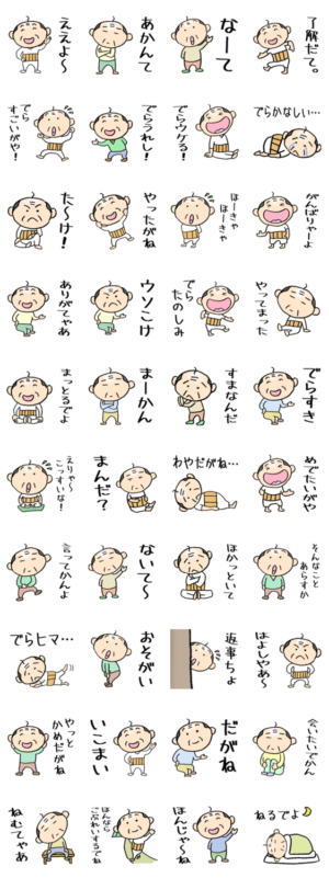 名古屋弁のちっちゃいおっちゃんスタンプです。Brody Machine より発売