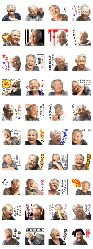 ウチナーオバアの変顔をスタンプにしました、婆ちゃんとはいえ 沖縄方言は控えめですので その気になれば うちなーんちゅ以外の方達にだって ご活用いただけると思います