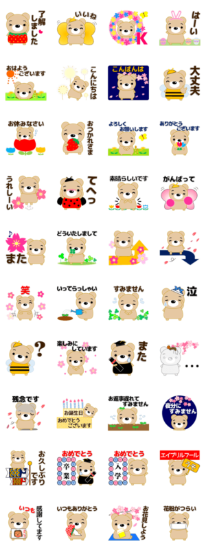 くま、テディベア好きなあなたへ 桜、お花見、花粉症、入学、卒業、母の日、エイプリルフール、こいのぼり、子供の日など。よく使う日常会話をプラス