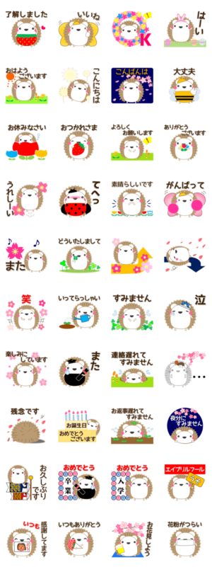 ハリネズミ好きのあなたへ 日常会話(春編) スタンプ画像一覧