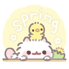 「お餅と犬と人の間で生きるポメラニアン」もちのスタンプ。春のごあいさつバージョンです。mal より発売