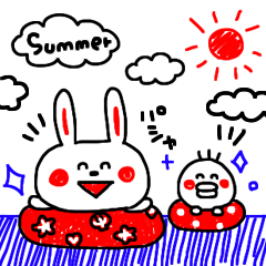 3色ボールペン12作目は、パンダやくま、ネコ、うさぎ、ブタ、ひよこ達の夏バージョン♪まるでノートの隅っこに落書きしたようなスタンプです【たかせゆづき】スタンプ