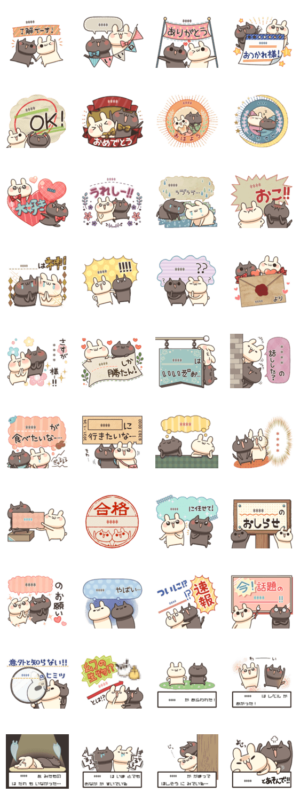 うさぎのしろとねこのくろの初のカスタムスタンプです!お好きな名前や文字を入れて楽しんで下さい!(一部の誤字を修正した最新バージョンです)