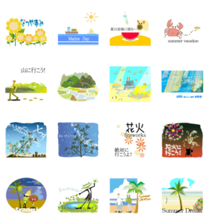 七夕、海の日、夏休み、花火、海、山のレジャーのスタンプmomofuku より発売