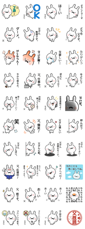 苗字/名字・名前専用うさぎの父バージョンです。家族で使える可愛いウサギ♪全国のパパや父さん、ぱぱさん、とーちゃんと呼ばれるオトンな方に!ゆるい兔で楽しい会話を☆Aworks より発売
