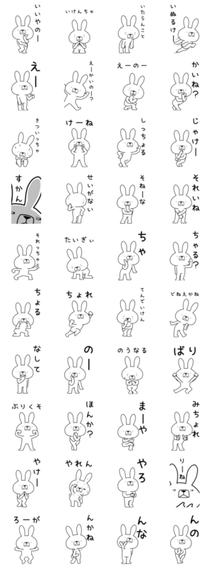 いろんな方言をつかううさぎのスタンプBIG下関弁編(山口・中国地方。違う県verに似た方言が見つかるかも)