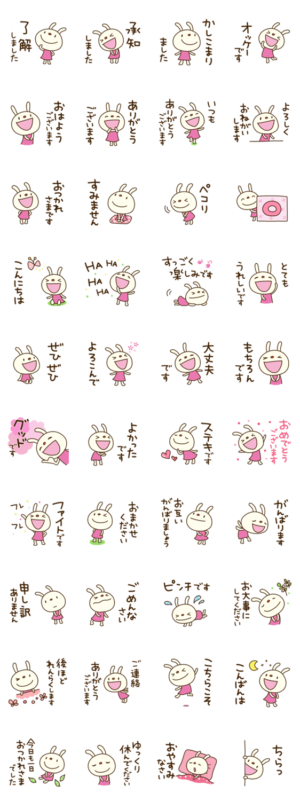 てるてるうさぎ。敬語編。「すみません」「承知しました」から「グッドです」まで。てるてるうさぎで、丁寧なメッセージを届けよう。家族、学校、お仕事でも。