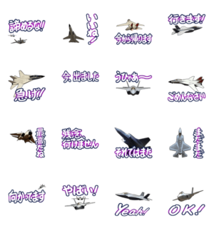 動く!戦闘機1(車、飛行機、バイクシリーズ) スタンプ画像一覧