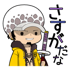 ONE PIECEの毎日使えるスタンプ-トラ男編-です。トラファルガー・ローがメインのスタンプです。毎日使える挨拶やリアクションが入っています。期間限定配信♪