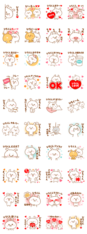 ひろし/ひろき/ひろあき/ひろゆき/ひろのぶ/ひろのり/ひろふみ/宏/浩/弘樹/宏明 等,ひろくんに送る名前・あだ名スタンプです。大好きな恋人,夫婦,友達に気持ちを伝えてね♥はちむー より発売