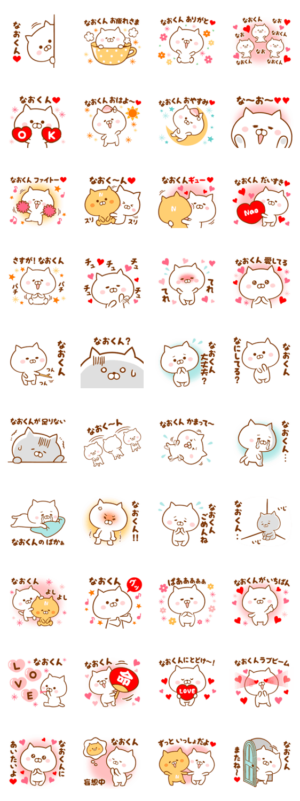 なおき/なおと/なおや/なおゆき/なおひろ/なおたか/直樹/尚人/直也/直之 等、なおくんに送る名前・あだ名スタンプです。大好きな恋人、夫婦、友達に気持ちを伝えてね♥