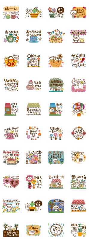 しろくまの基本セットをちょっと大人の雰囲気で雑貨屋風に作りました。ありがとう、了解、OK、おつかれ、など日常会話セットです。誕生日おめでとうと敬語も入ってます。KAKKOBOX より発売