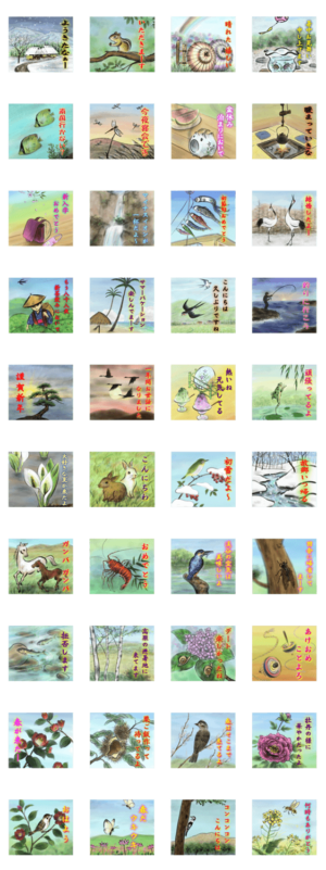 デジタルペンで描く日本の四季のたより墨絵 スタンプ情報