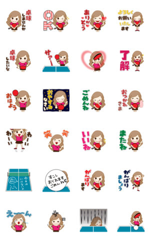 うごく!卓球ガール♡リノ スタンプ画像一覧