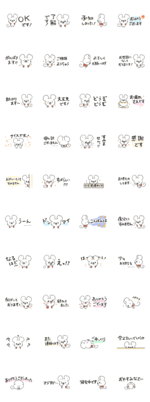 名もなきねずみ 小さな敬語スタンプ スタンプに書いてある文字一覧