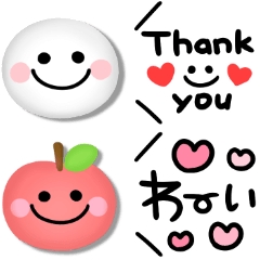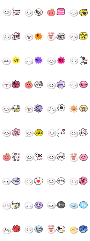 シンプルかつかわいいデザインで、幅広い世代の人が使えそうです。スマイルの顔だけではなくて、りんごや天気マークの顔もあって、使う側も楽しくなります。