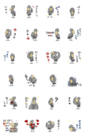 日常会話に毎日便利なハシビロコウの動くスタンプです。トマト より発売