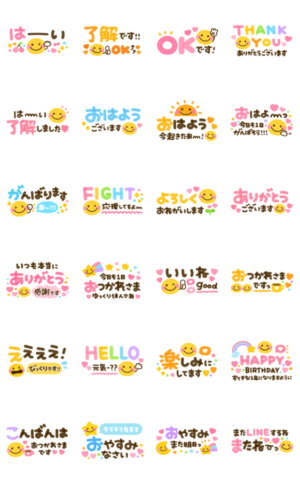 飛び出す♡カラフルメッセージ スタンプに書いてある文字一覧