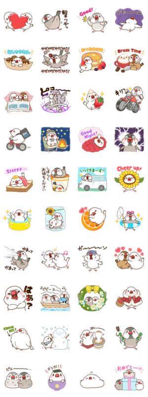 キュートな文鳥たちが贈る癒しのスタンプ第5弾が登場。日常で毎日使える挨拶や文鳥の可愛いリアクションが盛りだくさん。合言葉は「ぷくぷく」!