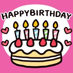 お誕生日おめでとうございます!ハッピーバースデーケーキ!お祝いの気持ちを伝えるLINEアニメーションスタンプ!バレンタインハート成人式入学卒業合格,父母の日の感謝にも♡