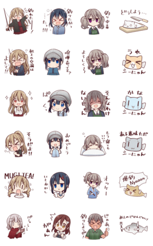 TVアニメ化決定の大人気釣りコミック『スローループ』 オールうちのまいこ先生描きおろしスタンプです! 釣りのシーンでも、日常でもご活用ください!