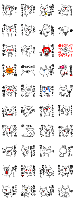 全国の「ママ」専用スタンプ。かわいい「うさぎ」が気持ちを代弁。日常会話で使いやすい。お母さんcosotto より発売