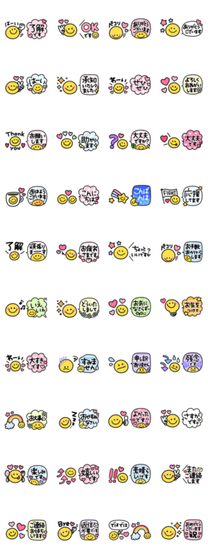 カラフル吹き出し♡毎日笑顔 スタンプに書いてある文字一覧