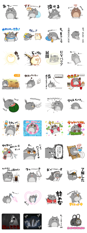 ボンレス猫の夏をテーマにしたスタンプ。 夏に特化したラインナップとなっております。もふ屋 より発売