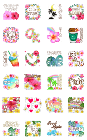 飛び出して動く♪南国ハワイの華やかな花 スタンプ画像一覧