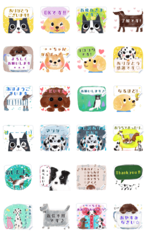 絵本からでてきたようなふんわり可愛いわんこのメッセージスタンプです♪ /ボストンテリア/トイプードル/ダルメシアン/ボーダーコリー/ラブラドール/芝犬/ダックスフンド他 現在この商品は一部のスマートフォン版LINE 10.3.0以上のトークルームでのみ使用できます。動作環境の最新情報はヘルプをご確認ください。herb tea* より発売