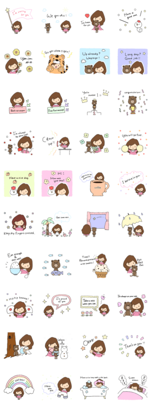 喜怒哀楽で忙しい乙女のスタンプ。応援バージョンの英語版です。ちいちゃん より発売