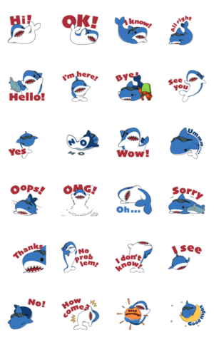 英語のええサメ、シャーくん!2 スタンプ画像一覧