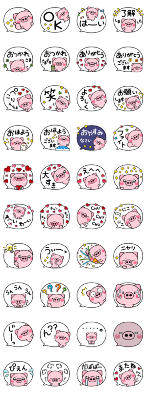 便利に使えるぶたさんの日常吹き出しスタンプです。【作:いしいともこ】