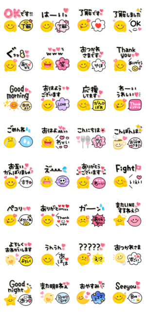 毎日スマイル☆ニコちゃんの吹き出し スタンプに書いてある文字一覧