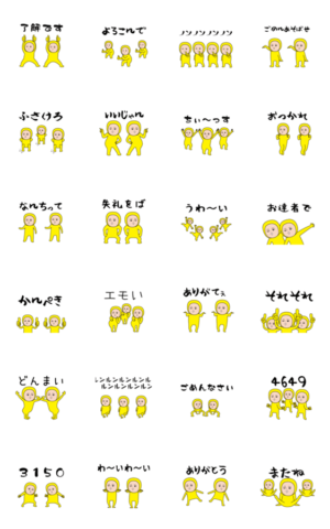 パッと見ダサいけど、昭和味があってかわいいスタンプ。黄色いタイツのおチビ編。自分で使ってもよし、プレゼントしてもよし