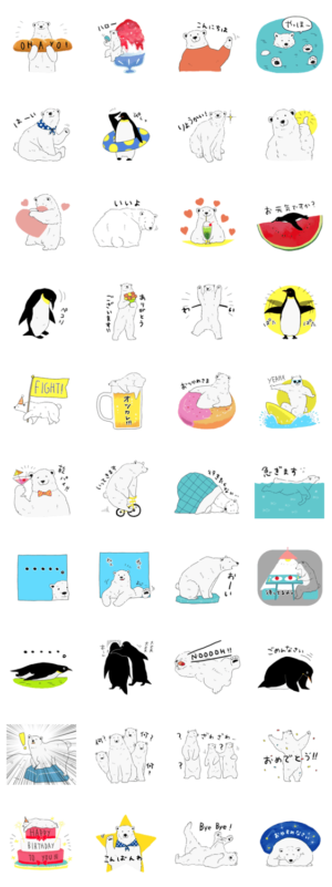 しろくまスタンプ第2弾! 朝起きてから夜寝るまで、しろくまとペンギンが、あなたの気持ちをまるっと伝えてくれる使いやすい手描きスタンプです。ao より発売