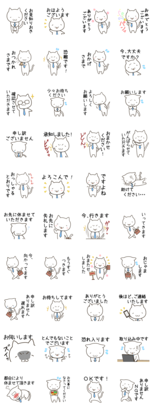 仕事やビジネスで使えるネコリーマン スタンプ画像一覧