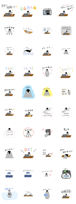 パソコンで作業する皇帝ペンギン スタンプ情報