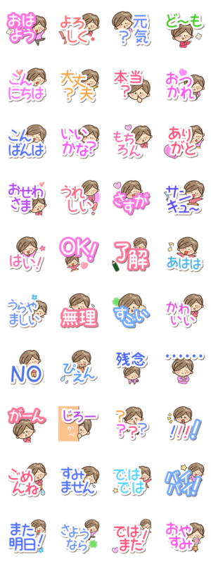 『おばあちゃんスタンプ』の、見やすくて選びやすい【大字】編です。『おばあちゃんスタンプ』の絵文字もあります。ばあばや、お母さん等のプレゼントにもぜひ。【かたこ】