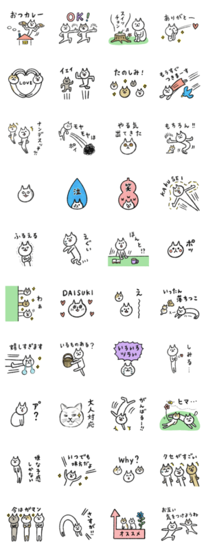 手描きイラストのようなしろねこのスタンプです。ゆるくてかわいいスタンプをラインに飾って癒されましょう。