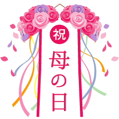 おかあさんに、「いつもありがとう」の感謝を伝えるスタンプです。カーネーションの花束、バラのくすだま、ハートのフラワーアレンジメントなどでお祝い!マリコ より発売