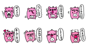 パソコンが大好きなクマ。モモを食べ過ぎてピンク色になった。ぽむぽむわたんぼる より発売